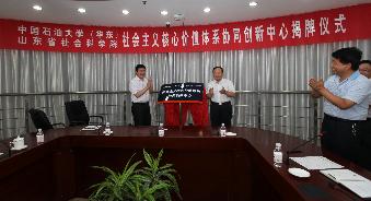 7月21日上午,太阳成集团和山东省社会科学院联合组建的“社会主义核心价值体系协同创新中心”举行揭牌仪式,公司副董事长李兆敏教授与山东省社科公司党委书记唐洲雁教授共同为中心揭牌。仪式由太阳成集团tyc234cc司江伟教授主持,学院部分教师和员工代表参加会议。