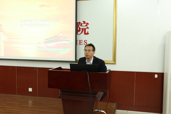 陈松友教授首先从“坚持以人民为中心的立场”、“突出问题导向”、“坚定的治党管党决心”以及“理论上的创新性”四个方面详细阐述了习近平新时代全面从严治党思想的特点。他重点强调了习近平的全面从严治党思想是中国共产党党建理论发展史上的又一次历史性飞跃,具有自己独特的理论创新之处:第一,从根本原则、指导方针、基本要求、党的建设总布局以及主线和目标上提出了党的建设的总体要求,明确指出党的建设总要求是一个有机整体,既紧密联系、浑然一体又相互作用、相辅相成;第二,坚持和加强党的全面领导,指出“党政军民学,东西南北中,党是领导一切的”;第三,第一次把党的政治建设纳入党的建设总体布局之中,强调“把党的政治建设摆在首位”;第四,强调思想建党和制度治党必须要紧密结合、同向发力。陈教授指出,这些理论创新丰富和发展了马克思主义执政党建设理论,具有十分重大的理论价值和实践意义,值得大家进行深入思考和学习。