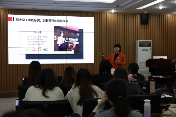 主题党课从“新时代赋予青年员工新使命”、“石大学子的责任与使命”和“担当起历史的使命与责任”三方面展开。首先,袁书记以十九大报告中习近平总书记对青年的寄语引出新青年的责任与使命——听党话,跟党走;不负重托,不枉青春;锻造成担当民族复兴大任的一代新青年。随后,通过艰苦创业的石大学子、实事求是艰苦奋斗的石大学子、创新图强跨越发展的石大学子,我们石大学子拥有七彩的梦等系列内容,展现了石大学子求真务实、创新图强的崭新风貌。最后,袁书记引用习近平总书记的话“今日中国,前所未有地走近世界舞台的中心,前所未有地接近实现中华民族伟大复兴的梦想”,号召同学们在实践中勇担历史使命与责任。