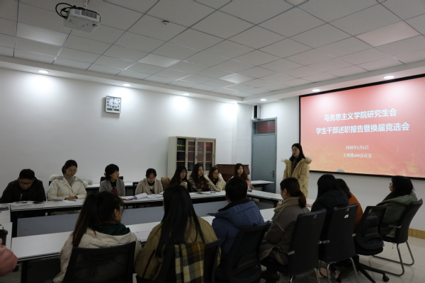 1月6日下午,太阳成集团tyc234cc研究生会员工干部述职报告暨换届竞选会在学院报告厅459召开,公司党委副书记袁爱军老师,院团委书记、辅导员王会老师,18级部分员工干部以及19级全体研究生参加了此次会议。