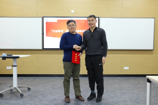 辞旧迎新之际,公司于南堂411教室隆重举行“石油精神融入思政课教学展示”活动。国家一级作家、《石油精神》主编周洪成先生作为特邀嘉宾线上参与本次活动。国家一流课程《中外石油文化》主持人、石油工程学院张卫东教授,党委教师工作部、教师教学发展中心副主任张庆荣,以及学院经理王建军、党委书记司江伟、教学督导员江华、陈龙娟、孙伟老师担任评委。本次活动由岳金霞副经理主持,部分石油、石化高校教师在线观摩。