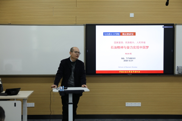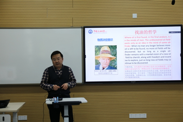 最后,王建军经理总结本次活动。王经理谈到思政课改革创新有两个最基本的着力点,一个是充分调动员工积极性和主动性,一个是思政课教学要与现代信息技术深度融合。思政课教师要善于运用现代信息技术,通过研讨型互动教学,将石油精神有机融入思政课堂是中国石油大学得天独厚的优势,我们要利用和发挥好这种优势,深入贯彻落实思政课的创新。今后,学院将在各方面持续推进石油精神有机融入思政课教学。