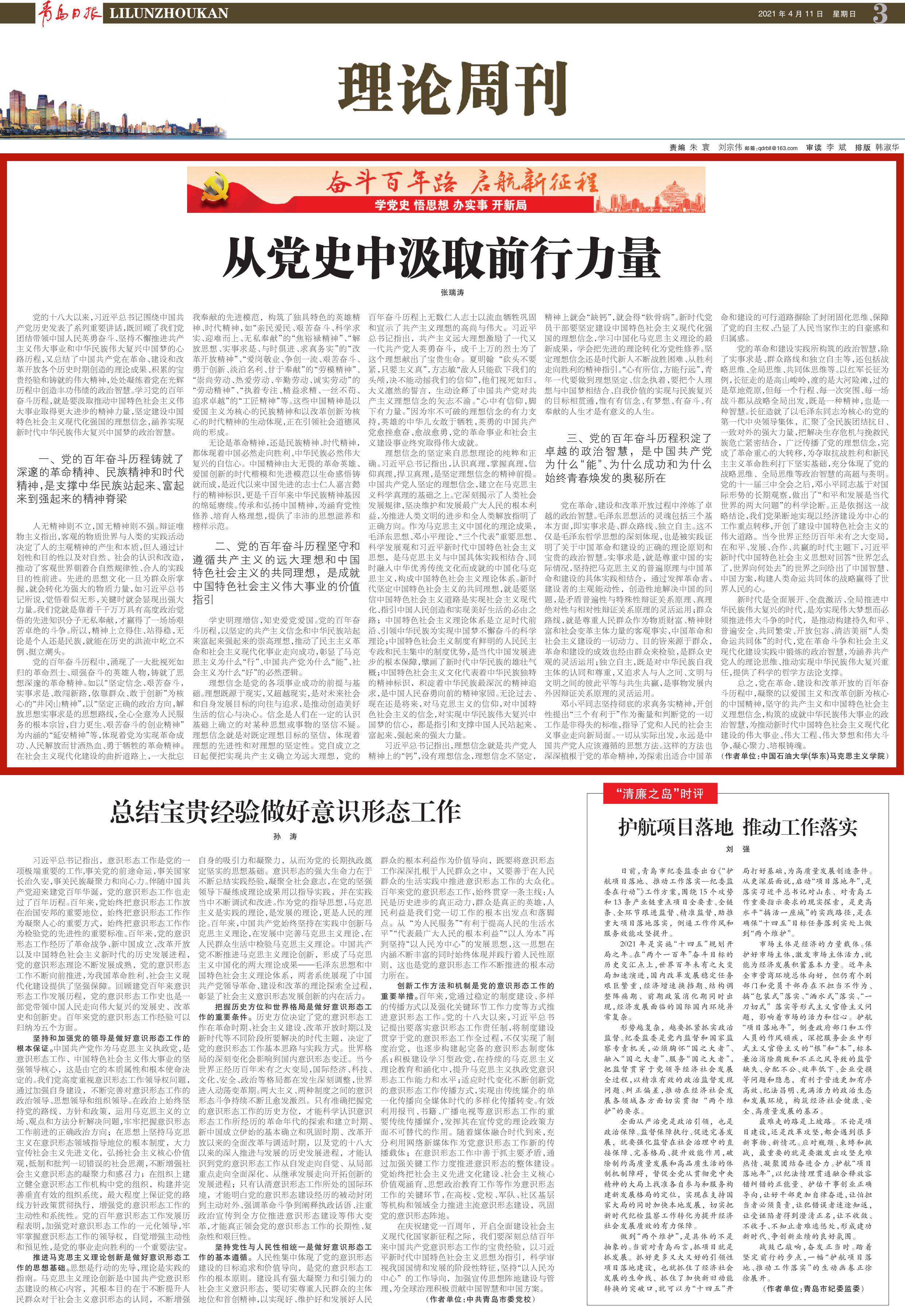 2021年4月11日,《青岛日报》第3版(理论版)刊发公司张瑞涛教授理论文章《从党史中汲取前行力量》。