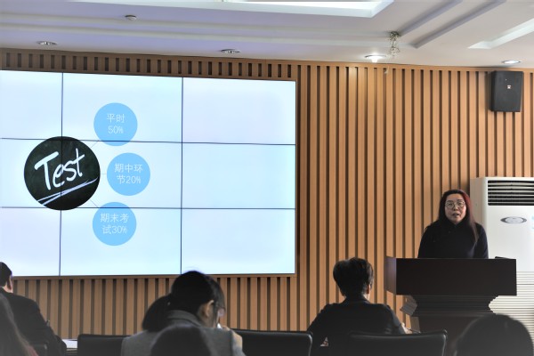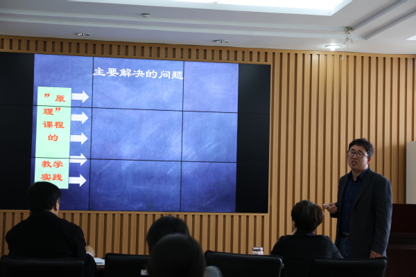 此次教师座谈会以公司走在教研教改前列的《马克思主义基本原理》课程为例,由原理教研室的4位教师代表对其教学模式中的教学设计、课程实施与过程考核分别进行介绍,并在情况汇报完毕后对学院其他老师的质询做出回应。
