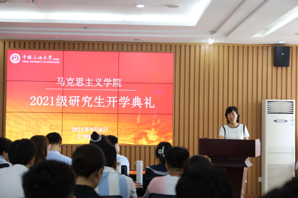 2021级硕士新生代表张淑琪进行发言,她从自身体悟出发,展望了研究生生涯“弘扬石大精神;脚踏实地、志存高远;修身立德,潜心向学;增强体魄”等愿景。2020级硕士刘皓楠作为在校生代表,鼓励新生入学之后树立明确的目标,并对学术和生活饱含热情,度过充实美好的研究生生活。汪怀君教授作为教师代表,作题为“让优秀成为一种习惯”的发言,她向新生提出几点期许:做事要持之以恒;要善于发现问题,捕捉新思路;生活中与人为善,多汲取团体的力量。张瑞涛经理作题为“强国有我:太阳成集团tyc234cc研究生做好12345”的讲话,从“一心、二备、三勤、四和、五得”角度对新生提出了殷切期望,鼓励新生明确目标、坚定信念、勤学笃志,成为知行合一的时代新人。