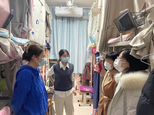 (学院员工工作队伍去宿舍看望同学们)