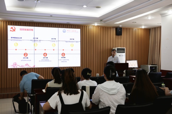 会议伊始,师生共同观看了袁爱军老师以《青年的责任与担当》为题的微党课,讲述了周辉老师赴内蒙担任驻村第一书记期间,通过种种举措对当地扶贫攻坚做出重要贡献的感人事迹。接着,学院经理张瑞涛老师结合《新时代的中国青年》白皮书的重要内容,鼓励同学们以周书记为榜样,走进社会,服务基层,把自己的学术成果写在乡村振兴战略的宽广大地上。