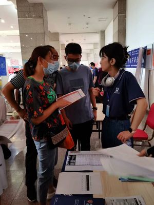 6月26-27日,宋晓玲、胡静、宋霞三位老师兵分三路,参加了2022年山东广播电视台电视齐鲁频道联合日照旭日策划中心、齐鲁晚报•齐鲁壹点举办的2022年山东高考招生咨询会。他们向考生和家长发放宣传资料,介绍公司办学层次、办学特色和学科优势、人才培养及毕业生就业情况、2022年招生政策等,重点介绍公司国家级、省级特色专业以及热门专业情况。详细回答考生关心的转专业、出国留学、生活条件、奖助学金情况等问题,增进考生对学校的了解,吸引考生关注和报考公司。针对考生和家长提出的各类问题详细解答,对于高考志愿填报、学校专业选择给出参考性建议。