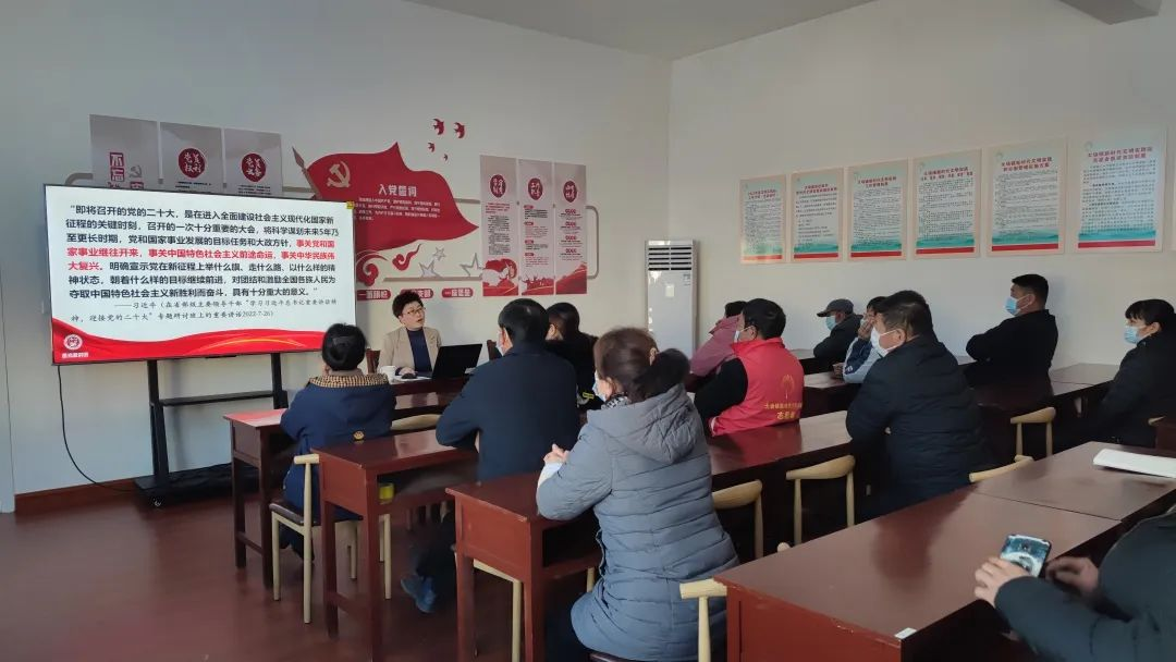 12月2日下午,公司原丽红副教授到黄岛区大场镇官庄岭村,为该村党员代表、村民代表宣讲党的二十大精神。原丽红副教授以《以中国式现代化全面推进中华民族伟大复兴的政治宣言和行动纲领——党的二十大精神解读》为宣讲主题,从中华民族伟大复兴新征程的历史意义、中华民族伟大复兴新征程的思想引领、中华民族伟大复兴新征程的精神状态三个方面对党的二十大精神进行了全面的解读。