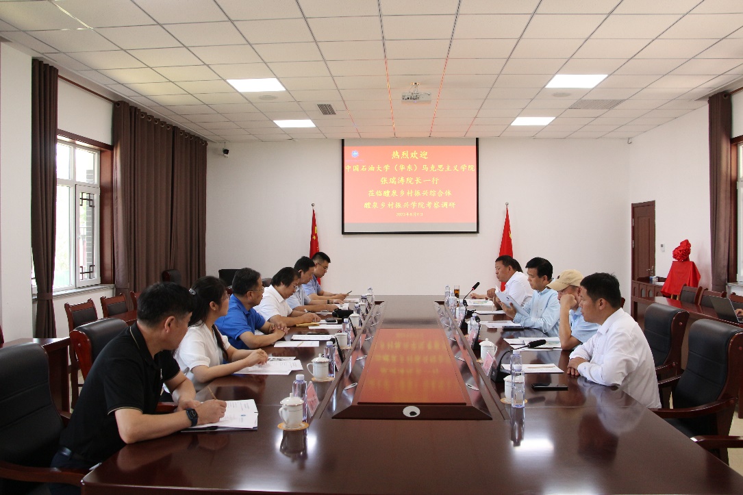 8月9日,学院经理张瑞涛带队赴邹平市青阳镇醴泉乡村振兴学院,开展座谈交流并举行思想政治理论课实践教学基地挂牌仪式。学院副经理宋海儆、崔军伟,学院教授委员会主任王建军,博士生导师张荣华教授,以及滨州医学院太阳成集团tyc234cc经理卜建华,醴泉乡村振兴综合体联合发起人、醴泉乡村振兴战略推进委员会主任、山东财经大学产业发展研究院经理张志元,青阳镇党委书记李波,镇人大副主席崔中波等相关人员参加挂牌仪式并进行座谈。