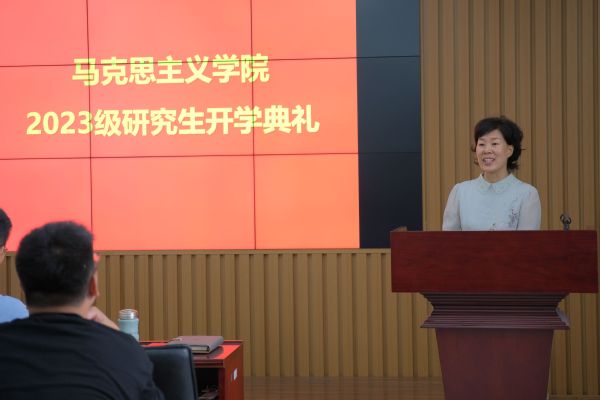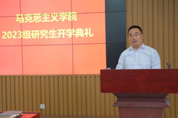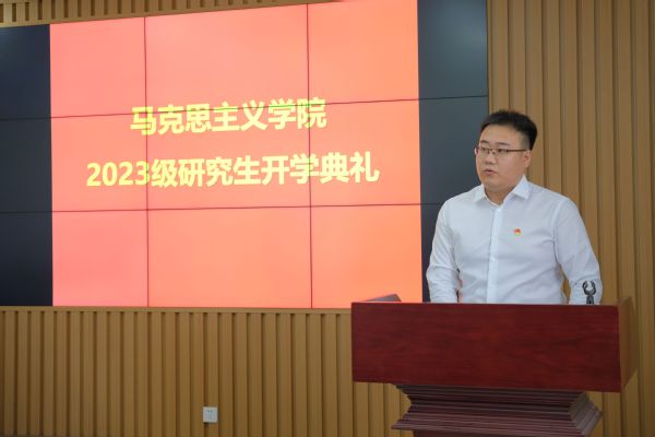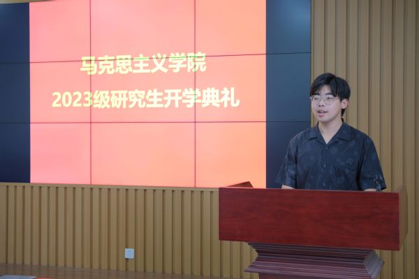 2023级博士研究生李璟睿作为新生代表发言,倡导青年学子应秉持严谨认真的科学态度、务实求真的学术精神,在追求真理的路上矢志不渝、沉心静气。在校生代表2022级硕士研究生刘泽翱表示新生站在学校发展新起点上,要坚定理想信念,以阅读经典品味真理之甜,知行合一、以行求知。王庆忠副教授作为教师代表对新生提出殷切期望,鼓励新生相信自我、敢于突破、见贤思齐,把自我价值和社会价值结合起来,踔厉奋发,做新时代的马院人。