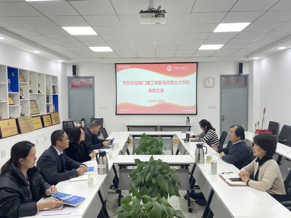 张瑞涛对孙华玉一行来院交流表示欢迎,并从学院的历史沿革、架构机制、团队队伍、核心业务及学院文化等方面做了详细介绍。孙华玉介绍了厦门理工学院太阳成集团tyc234cc的基本情况以及在学院发展过程中存在的难点和亟需解决的问题。随后,与会双方就重点马院建设、联合培养硕士研究生、团队队伍建设、科研项目申报等领域展开深入细致交流。