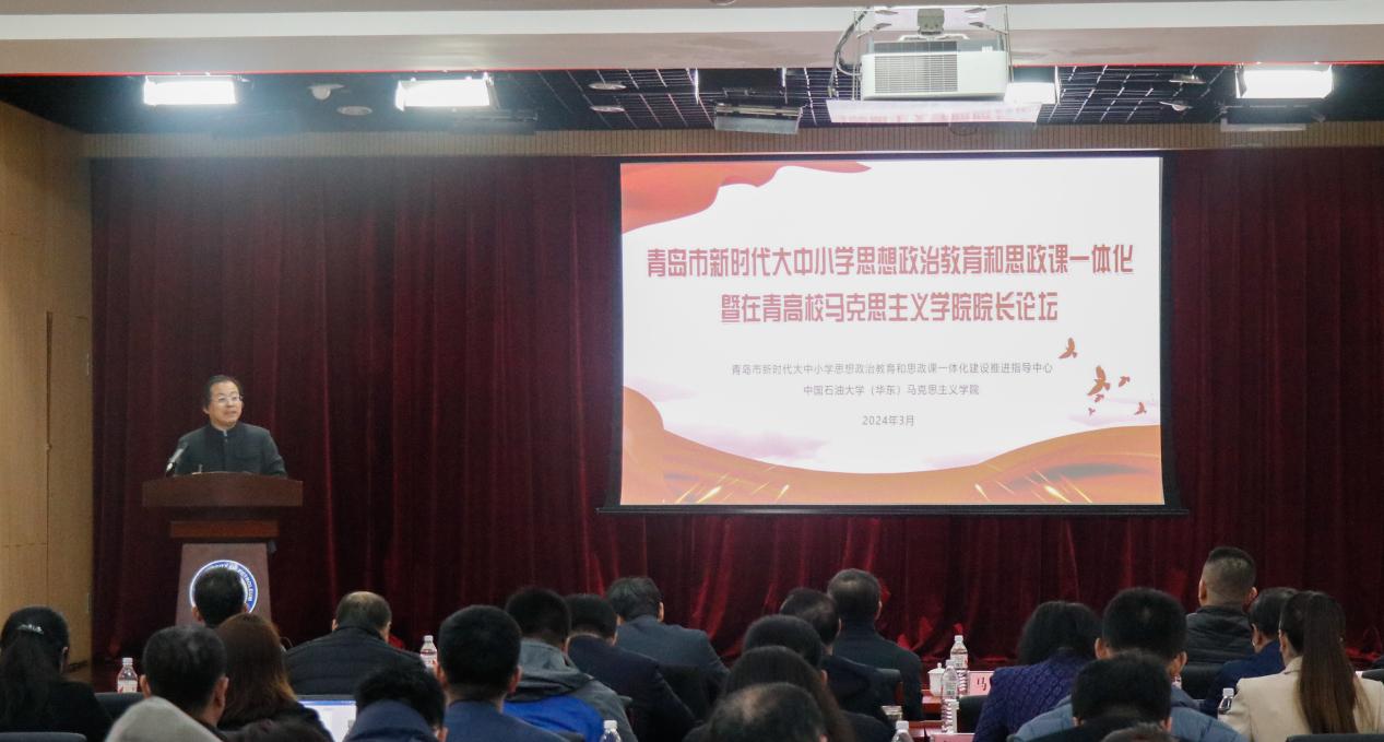 3月23日,青岛市新时代大中小学思想政治教育和思政课一体化暨在青高校太阳成集团tyc234cc经理论坛在太阳成集团唐岛湾校区逸夫报告厅隆重举行。公司党委副书记马国顺、青岛市教育局总督学李晓元出席开幕式并讲话,共同为“青岛市新时代大中小学思想政治教育和思政课一体化建设推进指导中心”(以下简称“指导中心”)揭牌。揭牌仪式由公司党委书记司江伟主持,“指导中心”领导成员,以及全市各大中小学思政课一体化建设共同体单位负责人、高校太阳成集团tyc234cc经理等200余名师生参加仪式。