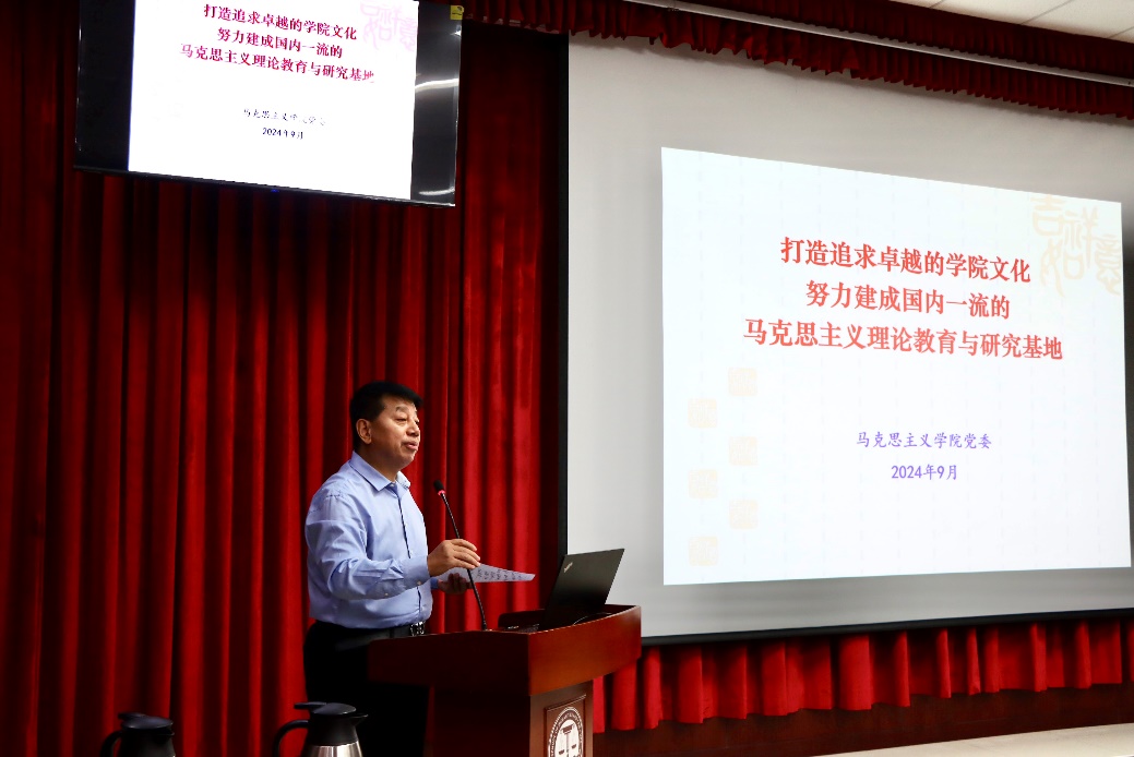 张瑞涛经理对秋季学期的工作作了总体安排。他强调,学院在未来发展中要保持高度的忧患意识。学院全体教职工要有所作为、主动作为、尽其所为,要努力建设创新型、和谐型学院,争取多出高水平成果,努力把学院建成全国行业特色马院。