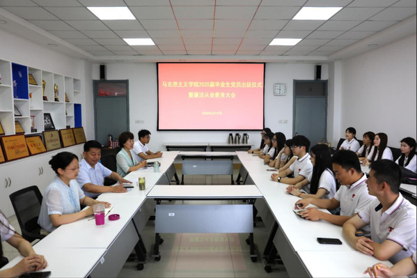 为引导马院毕业生党员牢记初心使命、坚定理想信念、践行党的宗旨,在学习和工作岗位上持续发挥党员的先锋模范作用,6月19日上午,学院在文理楼459开展毕业生党员出征仪式暨毕业生廉洁从业教育。公司党委书记司江伟作题为《明规知纪强素养 稳健走好人生路》的专题报告,学院党委副书记、副经理袁爱军主持会议,学院团委书记王会及学院2025届全体毕业生参加。