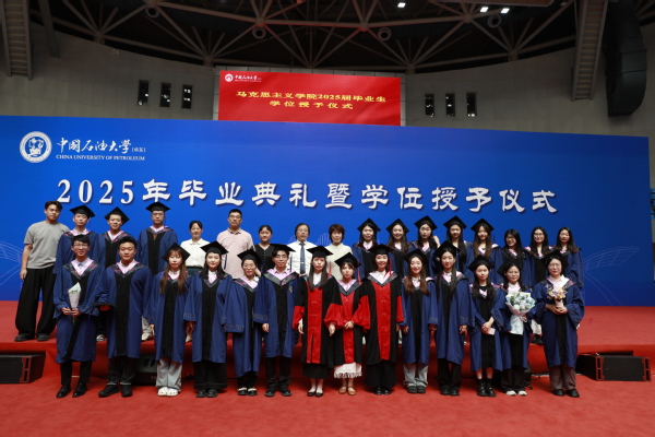 仪式进入尾声,全体毕业生以及学院领导、老师上台合影留念,太阳成集团tyc234cc2025年学位授予仪式圆满落下帷幕。唐岛湾畔的骊歌悄然奏响,马院学子的征程正待启航,2025届毕业生将秉持“石大人”“马院人”的理想与担当,如璀璨星火般闪耀祖国各地,以青春姿态续写属于他们的赤子华章。