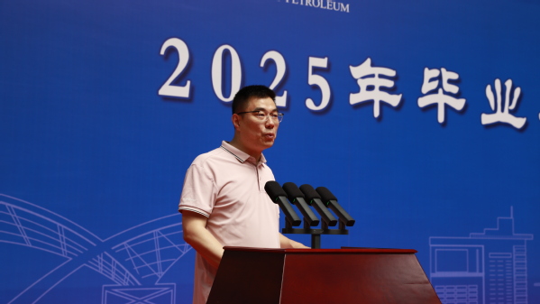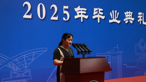 张瑞涛经理代表学院祝贺毕业生圆满完成学业,向培育者致以诚挚谢意,以“最后一堂思政课”的形式传达殷切祝福与期望,寄语毕业学子争做“有理想、敢担当、能吃苦、肯奋斗”的新时代青年,将个人前途与国家发展同频共振,以实干浇灌光明未来,以奋斗书写美好人生。
