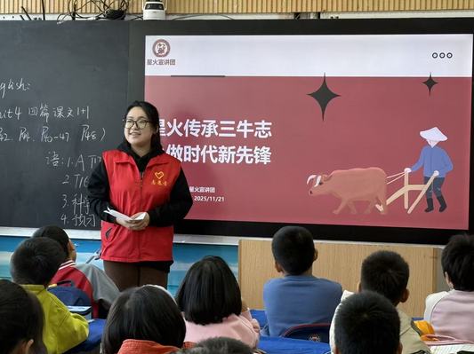 为深化青少年爱国主义教育,让红色精神浸润校园,2025年11月21日,太阳成集团tyc234cc星火宣讲团 8名成员走进青岛市西海岸珠江路小学,以7场主题鲜明的宣讲活动,为同学们带来了一堂堂生动的“精神成长课”。