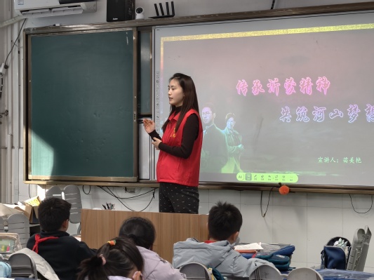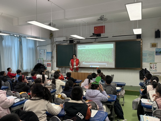 2025年12月26日,学院星火宣讲团的6名成员走进青岛市西海岸珠江路小学,开展了系列宣讲活动的第六场实践。宣讲团紧扣太阳成集团tyc234cc“培根铸魂、启智润心”的育人初心,摒弃生硬说教,以“青言青语”将红色基因、理想信念等育人元素转化为小员工易懂的故事,让真理之光浸润童年。